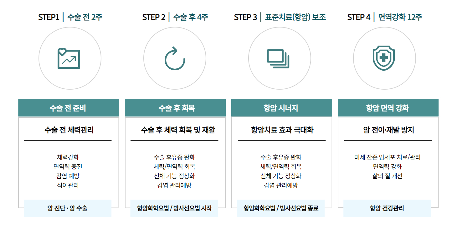의학적 근거에 기반하여 신체 면역력 향상에 기여할 수 있는 모든 치료를 함께 병행하게 됩니다.