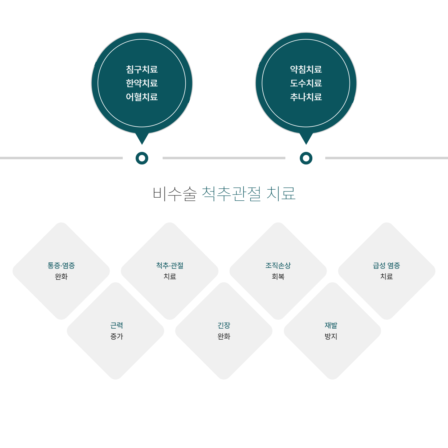 환자의 상태에 맞춰 단계적으로 치료를 실시하며, 척추와 관절 주변 조직을 강화하고 체형의 구조적 문제를 개선함으로써 통증 재발을 방지하고, 증상의 완화와 빠른 회복을 도모합니다.